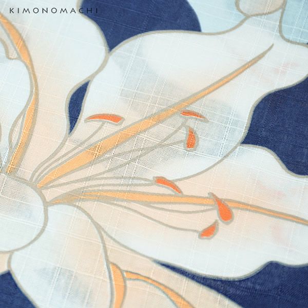 京都きもの町オリジナル浴衣単品「ブルー 百合」S、フリー、TL、LL 綿浴衣 お仕立て上がり浴衣 レディース 女性浴衣