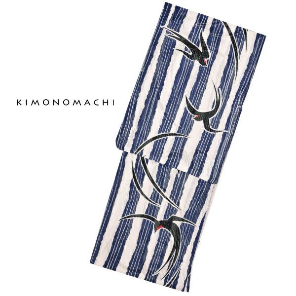 【色柄】白地に、紺色の縞と燕(つばめ)