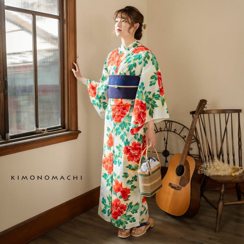 KIMONOMACHIオリジナル!吸水速乾、CoolPass素材使用のポリエステル浴衣、レディース浴衣単品です。