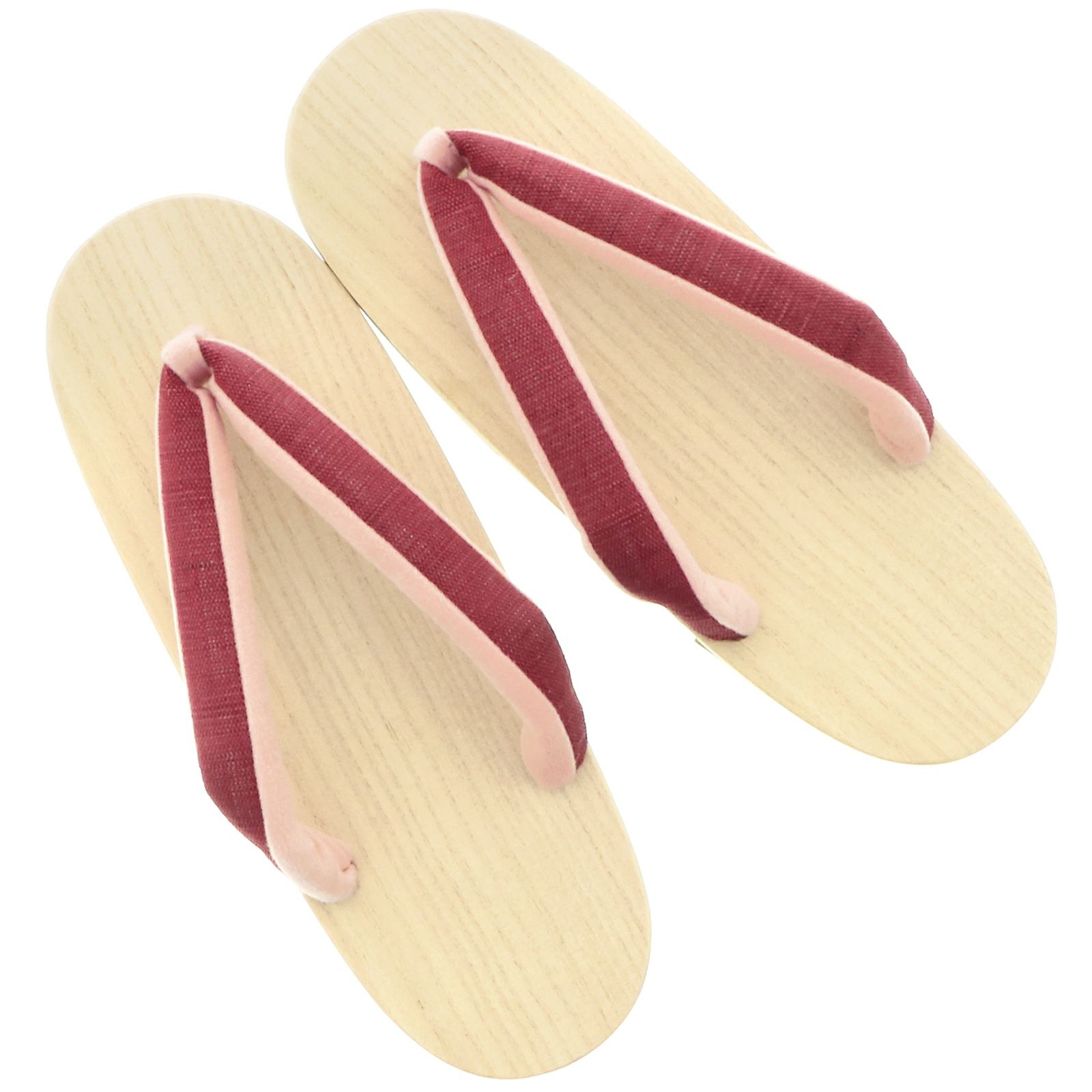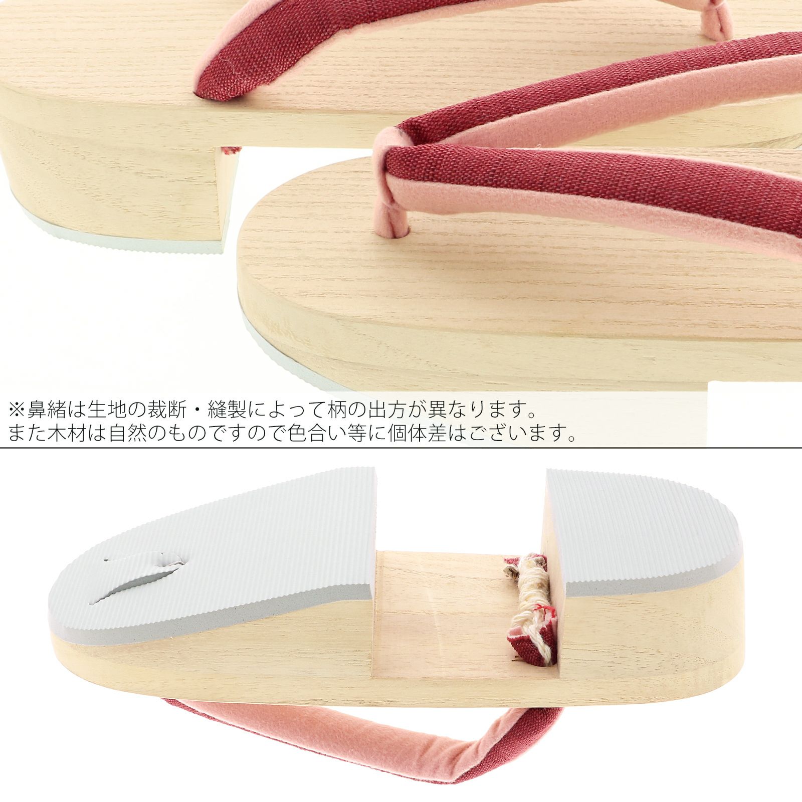 【カラー】白木の台に赤紫の鼻緒、鼻緒の裏地はピンク色。