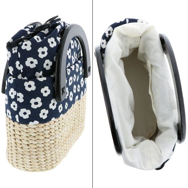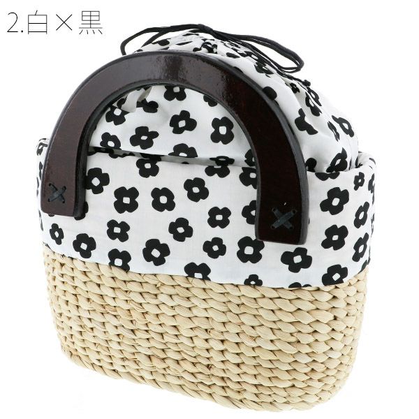 【Prices down2】とうもろこしバッグ単品「紺×白、白×黒 お花」編み籠バッグ 浴衣巾着 浴衣バッグ 【メール便不可】ss2506wkm10