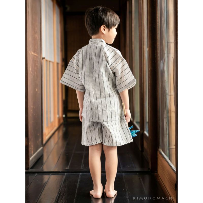 綿麻素材の爽やかで着心地の良い男の子用甚平です。90cm~140cmの全6サイズです。