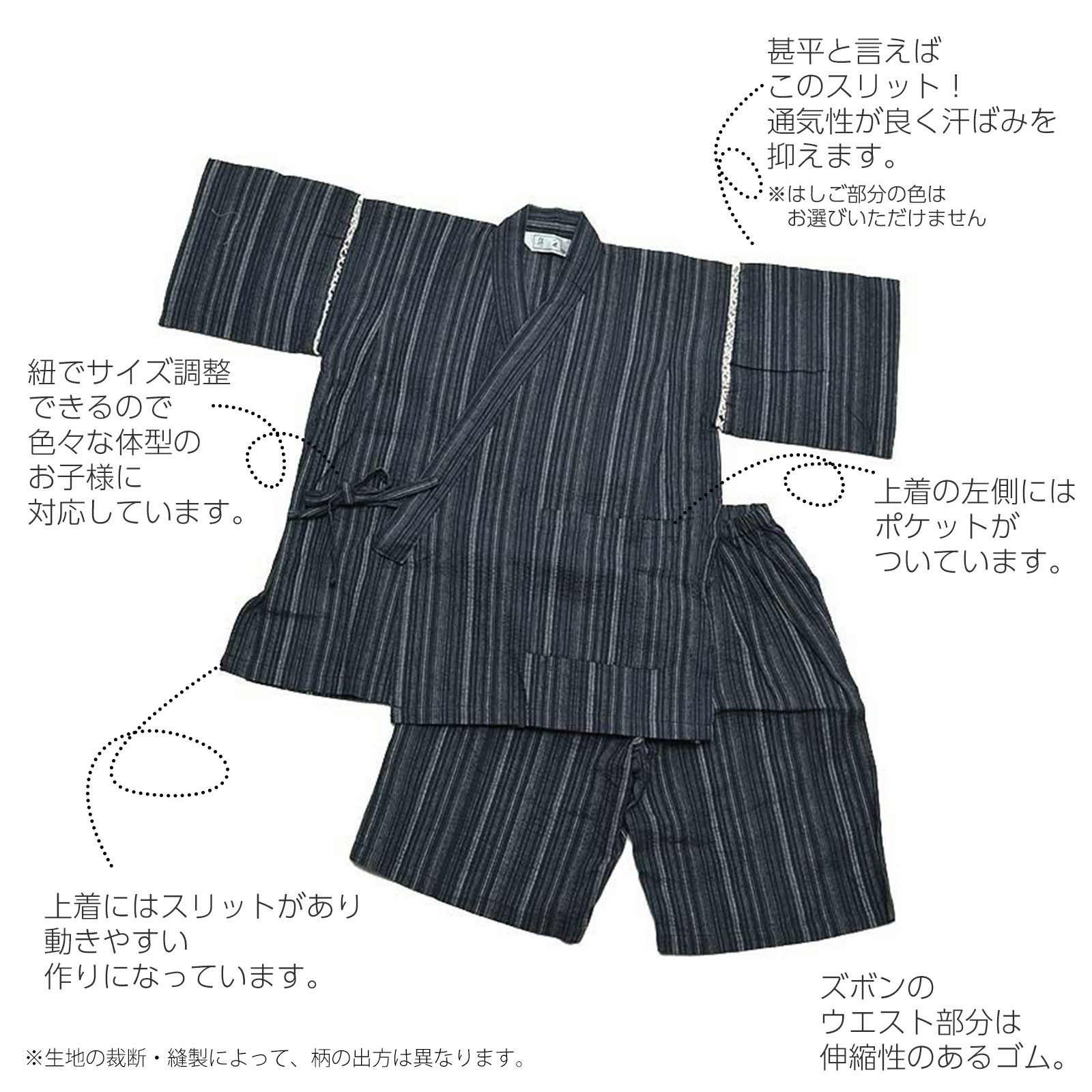 綿麻素材の爽やかで着心地の良い男の子用甚平です。90cm~140cmの全6サイズです。