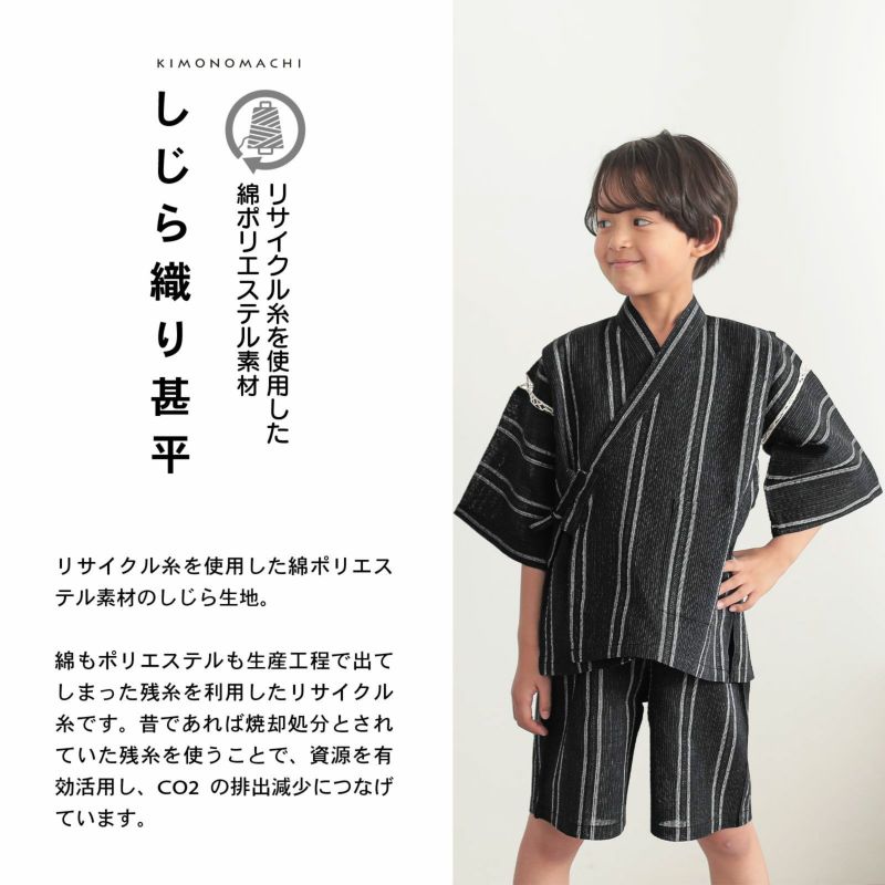 リサイクル糸を使用した綿ポリエステル素材のしじら織り甚平です。