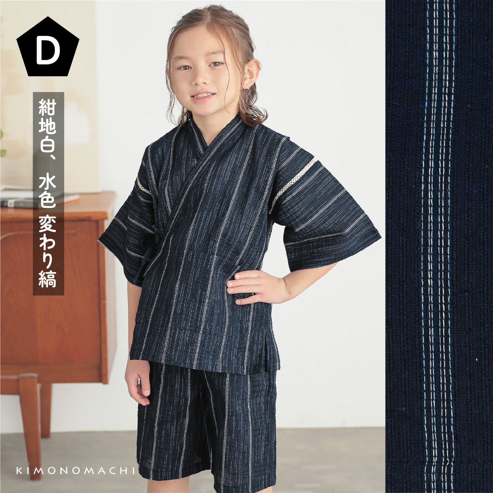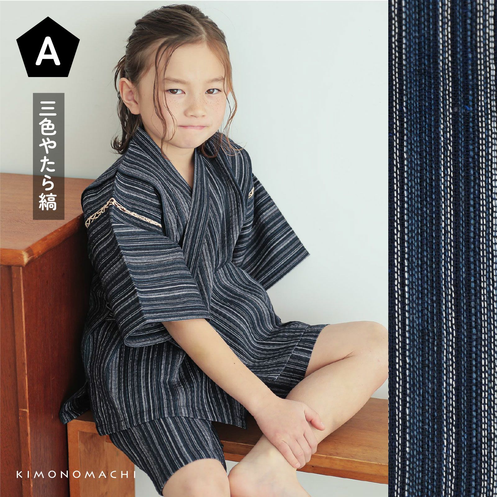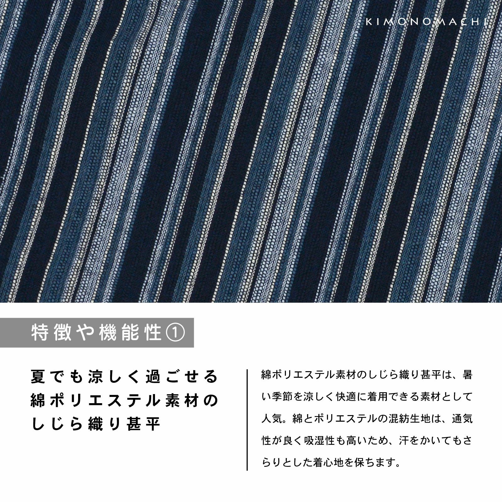 綿ポリエステル素材のしじら織り甚平は、暑い季節を涼しく快適に着用できる素材として人気。