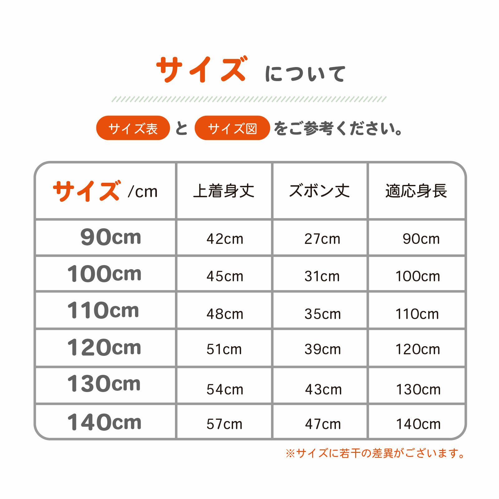 ※身長はあくまで目安です。上衣着丈とズボン丈からお選びください。