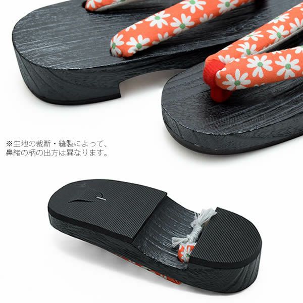 【カラー】鼻緒はオレンジ色地に小花模様。台は黒色。