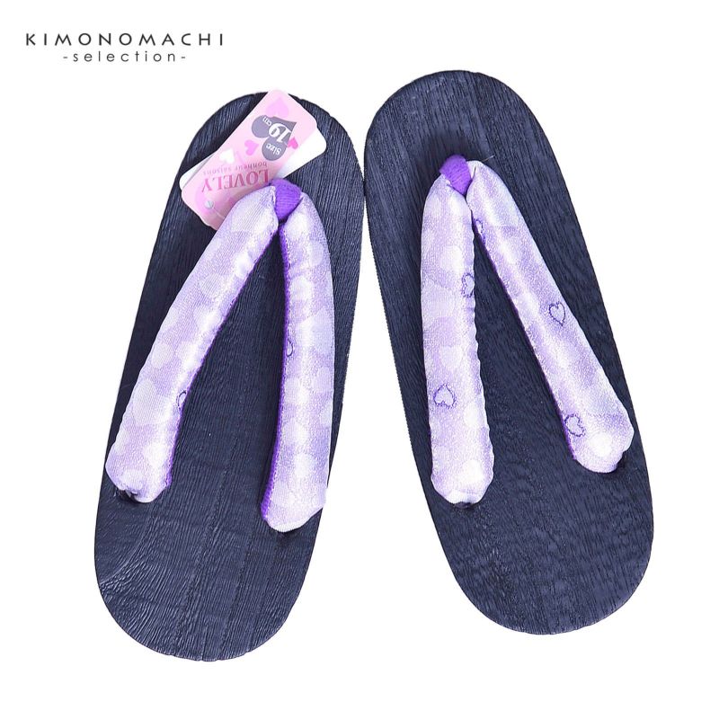 ジュニア、キッズのオシャレな下駄 子ども 下駄単品 「薄紫色地にハート」 19cm 女の子 女児 夏の浴衣、甚平に 子供ゲタ 【メール便不可】