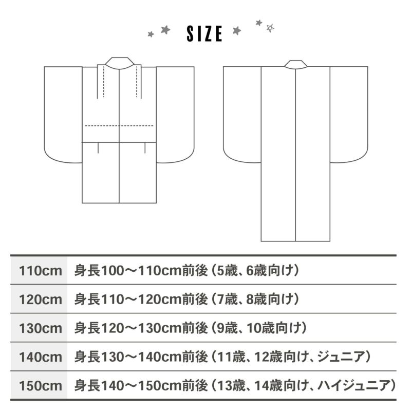 ※ 140,150cmの浴衣には着付け用の紐・身あげ・肩上げはございません。