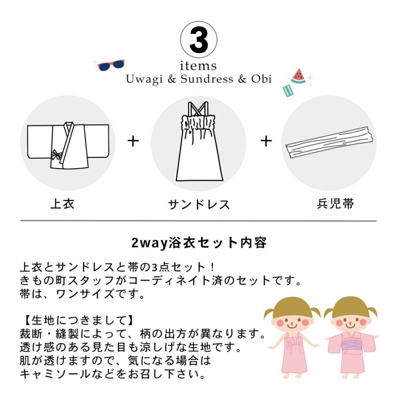 【商品内容】浴衣(上衣+サンドレスのワンピース)+帯の計3点セット