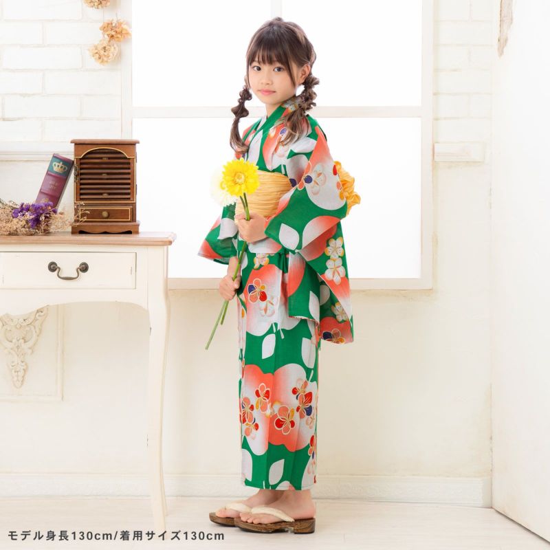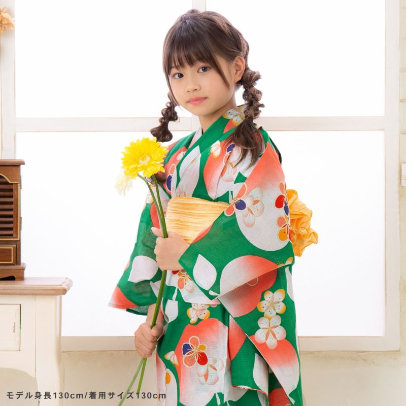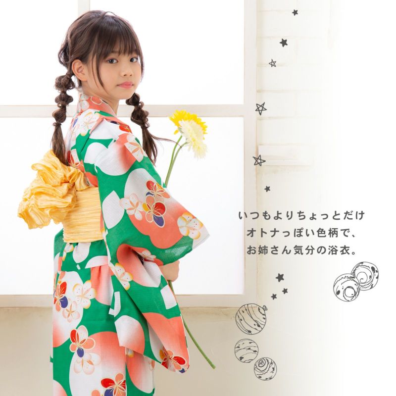可愛らしい女の子浴衣セットです。大人に負けないオシャレな浴衣とKIMONOMACHIオリジナルのふわふわくしゅっとしたシワ加工がかわいい兵児帯がセットです。