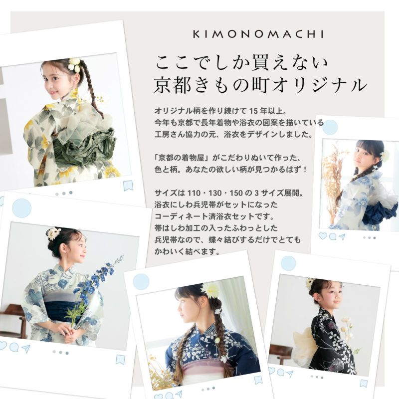 2025年新作浴衣 おうち浴衣、お祭り、花火大会、盆踊りに!KIMONOMACHIオリジナル浴衣セット 浴衣 子供 女の子 子供浴衣セット(浴衣+帯) 浴衣2点セット「糸菊に菊花紋・向日葵・雪輪に花の丸・秋草に虫かご」110cm/130cm/150cm 綿浴衣 こども 子ども キッズ ジュニア ゆかた yukata set kids 京都きもの町オリジナル KIMONOMACHI【メール便不可】