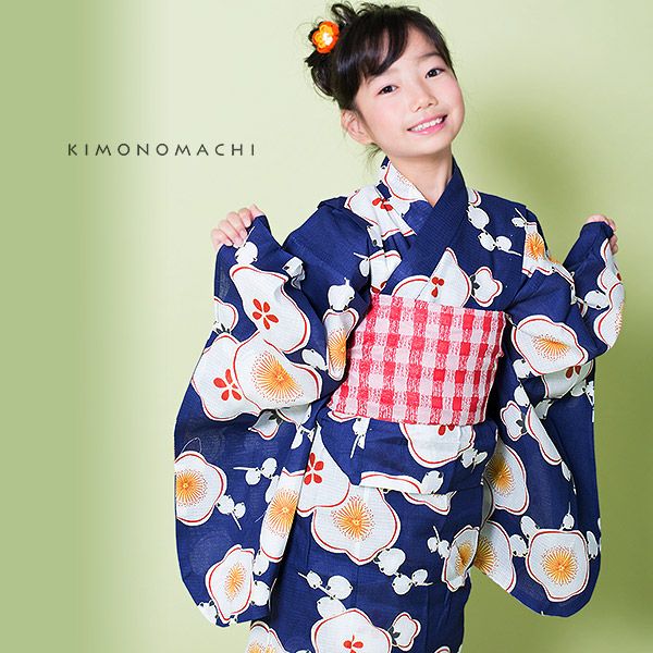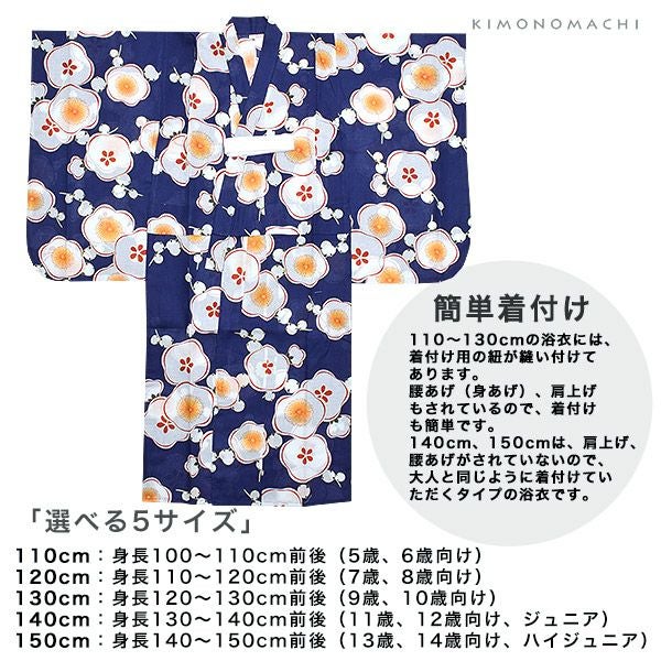 5. こども浴衣単品「紺色 梅」110cm、120cm、130cm、140cm、150cm 女の子浴衣 夏祭り、花火大会に レトロ KIMONOMACHI 【メール便不可】ss2512kkd10