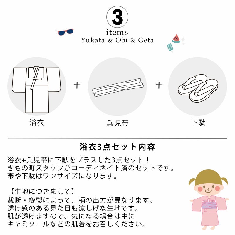 【商品内容】浴衣、兵児帯(おまかせ)、下駄(おまかせ)の計3点セット