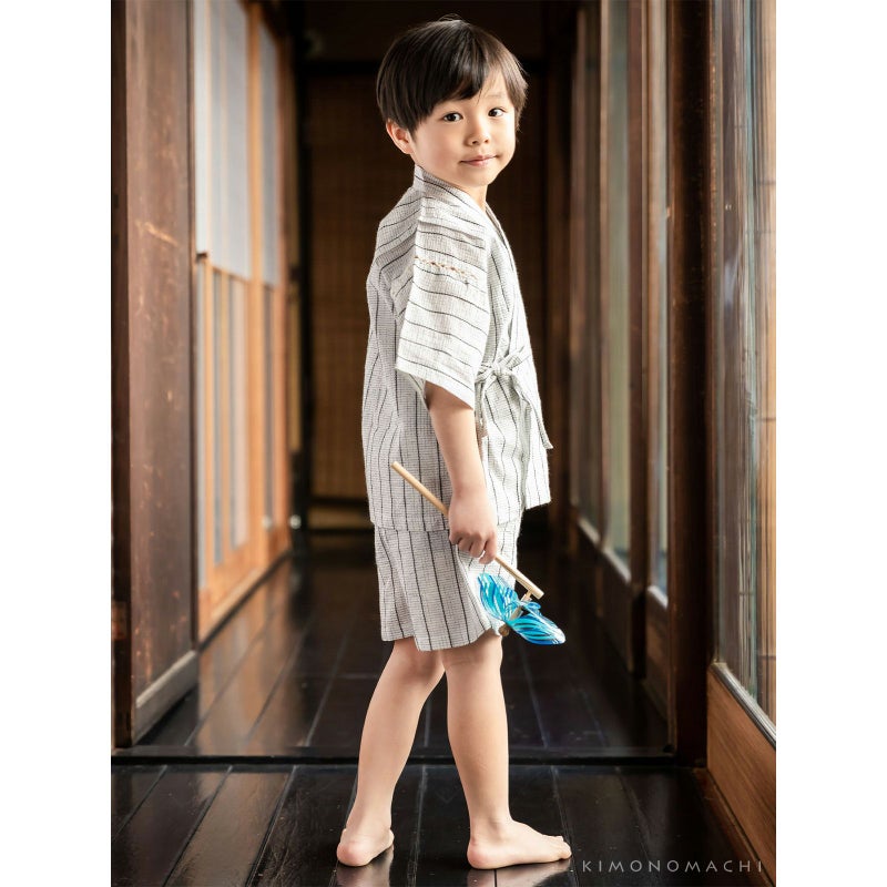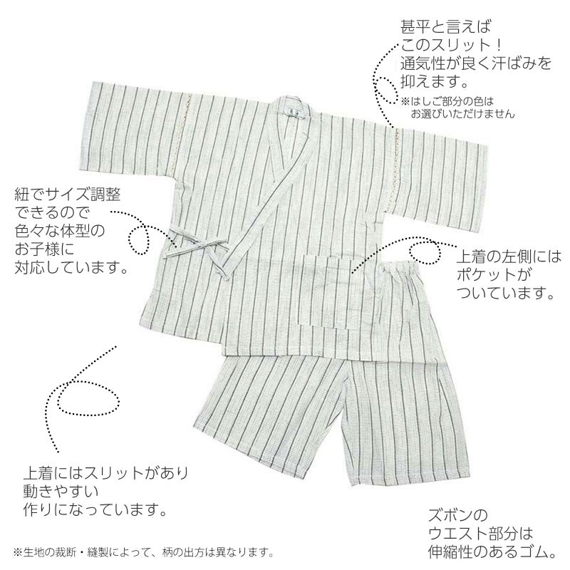綿麻素材の爽やかで着心地の良い男の子用甚平です。90cm~140cmの全6サイズです。