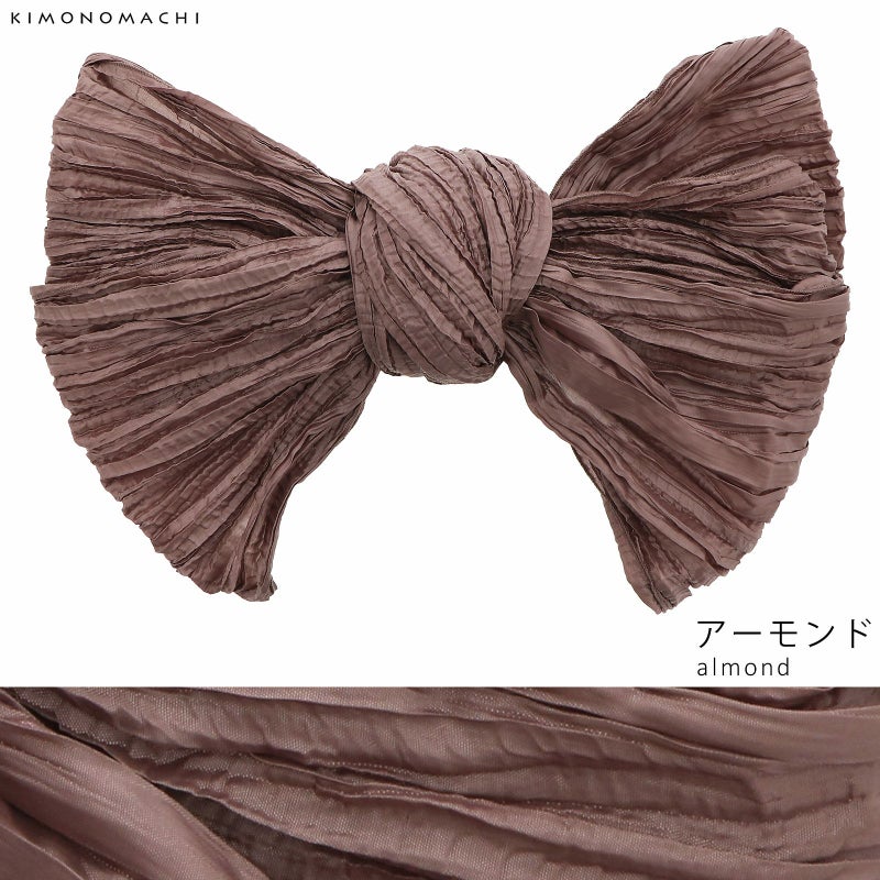 帯(アーモンド)…ややピンクみの浅い茶色。ニュアンスカラーとくしゅくしゅの生地感が、優しく落ち着いた印象です。