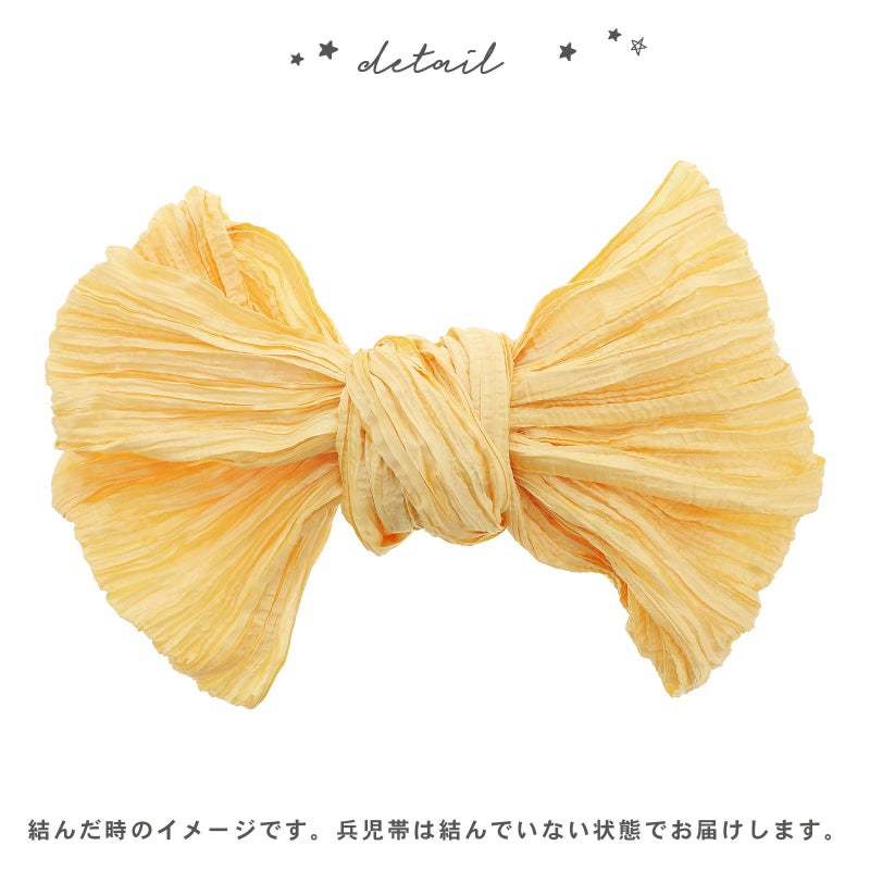 帯…明るく浅い黄色。光沢のある生地感とくしゅくしゅのしわが華やかな雰囲気を添えます。