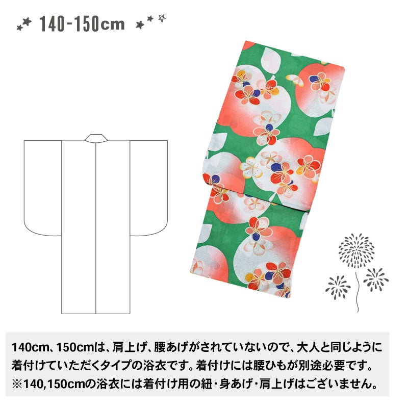 ※ 140、150cmの浴衣には着付け用の紐・身あげ・肩上げはございません。
