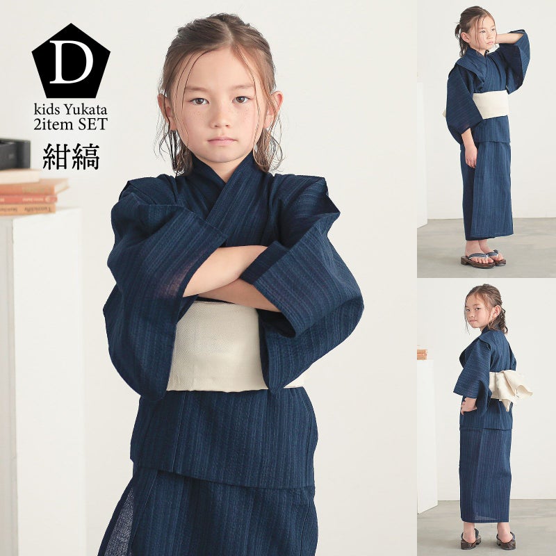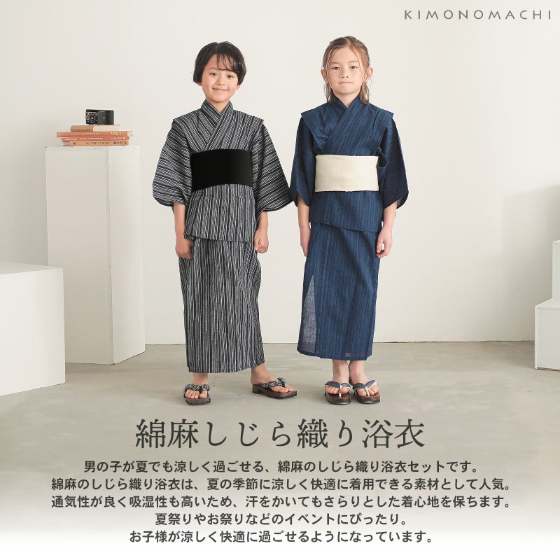 男の子が夏でも涼しく過ごせる、綿麻のしじら織り浴衣セットです。
