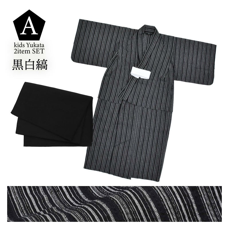 浴衣:黒地に白と薄藍の縞模様