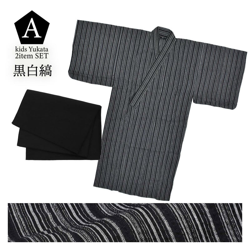 浴衣:黒地に白と薄藍の縞模様