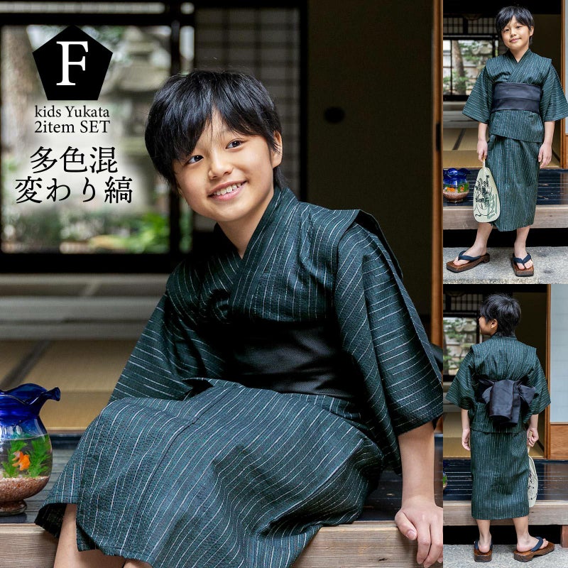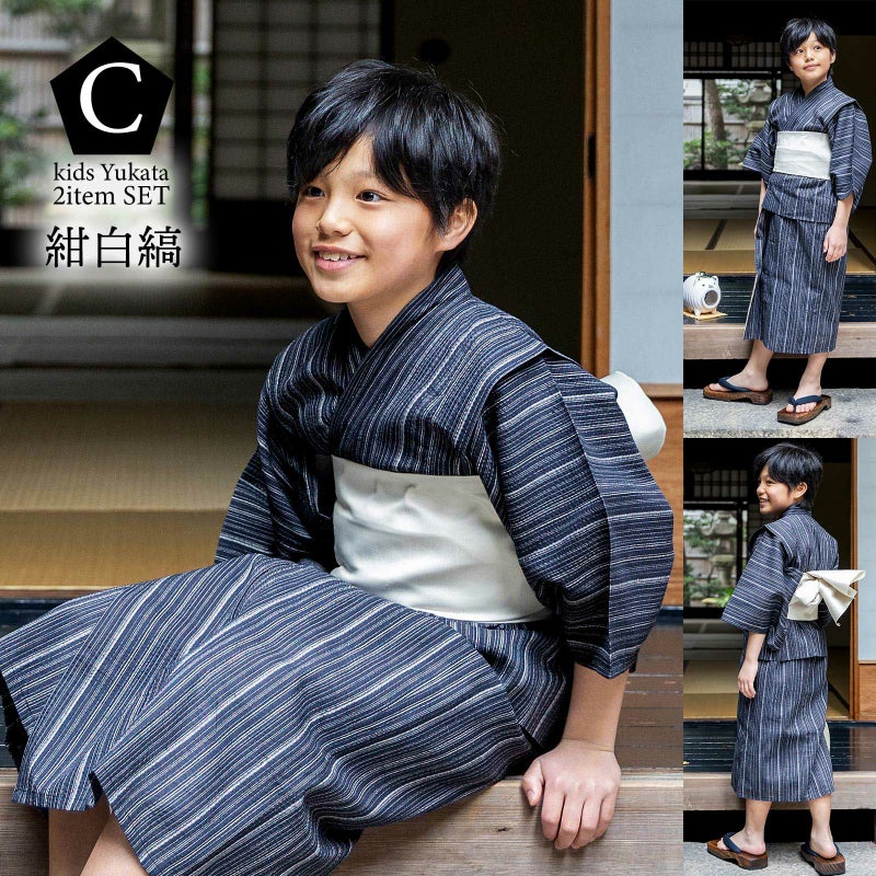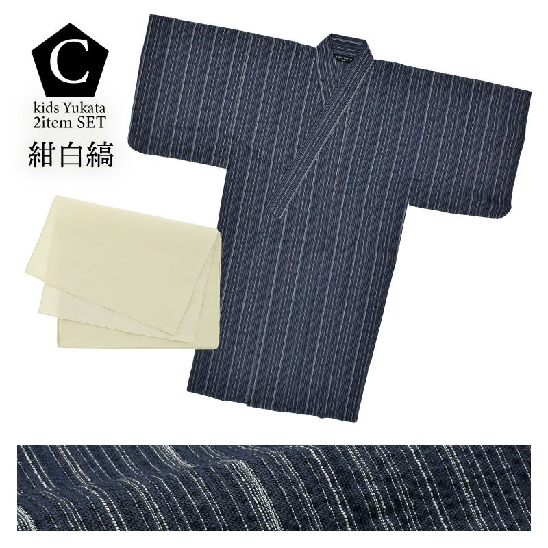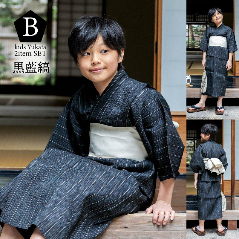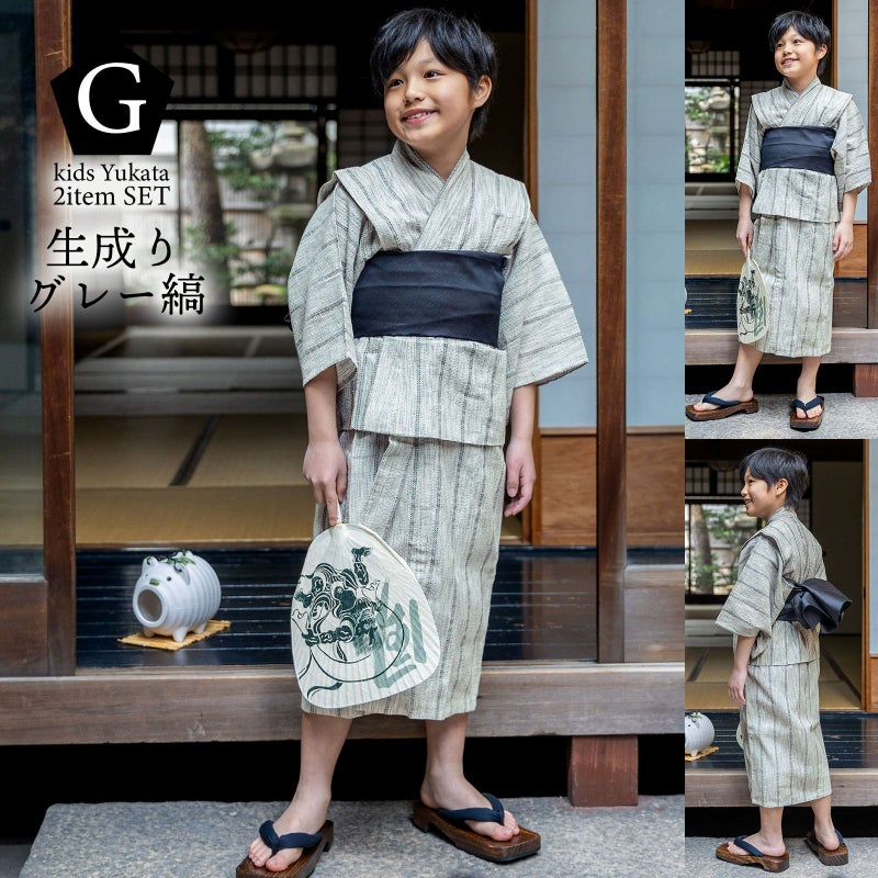 男の子が夏でも涼しく過ごせる、綿麻のしじら織り浴衣セットです。