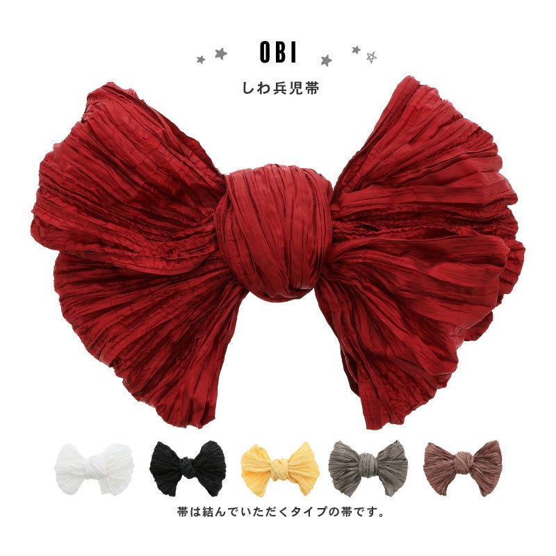 帯(ブラック):墨のような黒。光沢のある生地感とくしゅくしゅのしわの表情が奥行きのある印象。