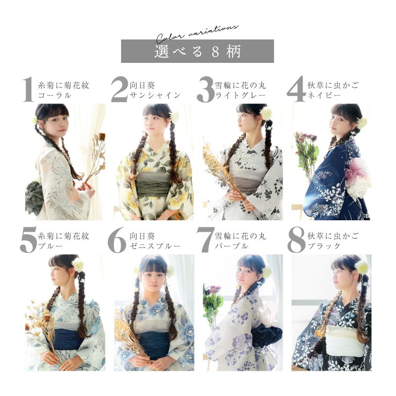 ※上衣とワンピースのセパレート浴衣と帯のセットとなります。モデル着用はイメージです。髪飾りや下駄などの小物類は付属いたしません。