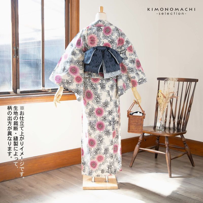 綿素材なのでご自宅でのお洗濯・お手入れが可能です。夏のお出かけにぴったりな、粋で大人っぽい浴衣です。