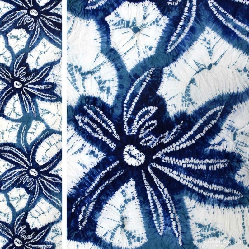 ※ひとつひとつ手作業で職人さんが括り(くくり)や染めなどをほどこし、製作しております。そのため、1点1点、若干ですが、色合い、絞りの大きさが異なります。また、染めのムラ等も絞りのあじとしてご堪能ください。