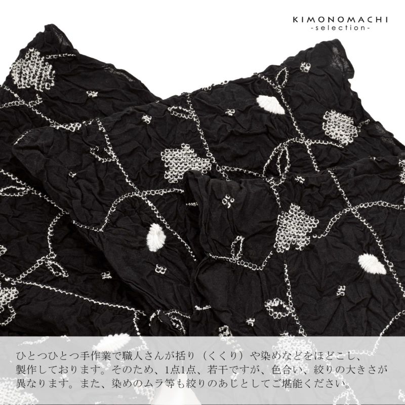 ※ひとつひとつ手作業で職人さんが括り(くくり)や染めなどをほどこし、製作しております。そのため、1点1点、若干ですが、色合い、絞りの大きさが異なります。また、染めのムラ等も絞りのあじとしてご堪能ください。