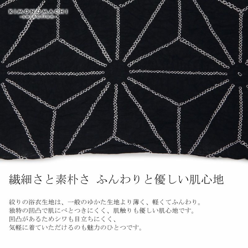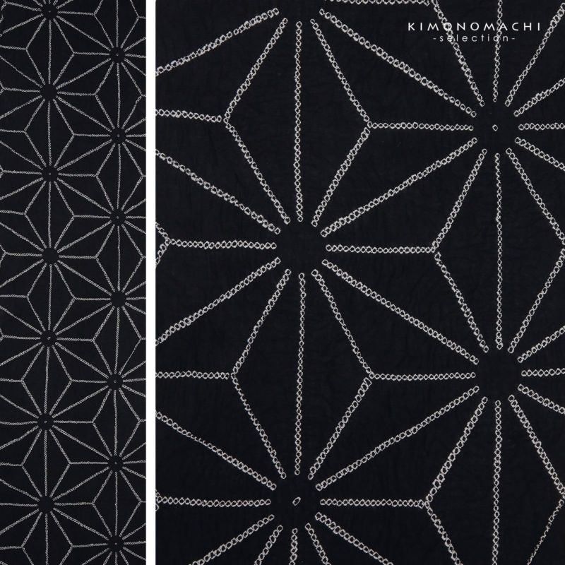【色柄】黒地に白の細かな鹿の子を繋げて表現された大きな麻の葉模様。古典的で格好良い浴衣です。