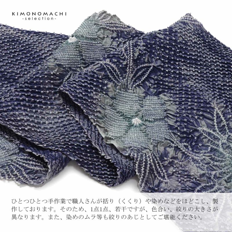 ※ひとつひとつ手作業で職人さんが括り(くくり)や染めなどをほどこし、製作しております。そのため、1点1点、若干ですが、色合い、絞りの大きさが異なります。また、染めのムラ等も絞りのあじとしてご堪能ください。
