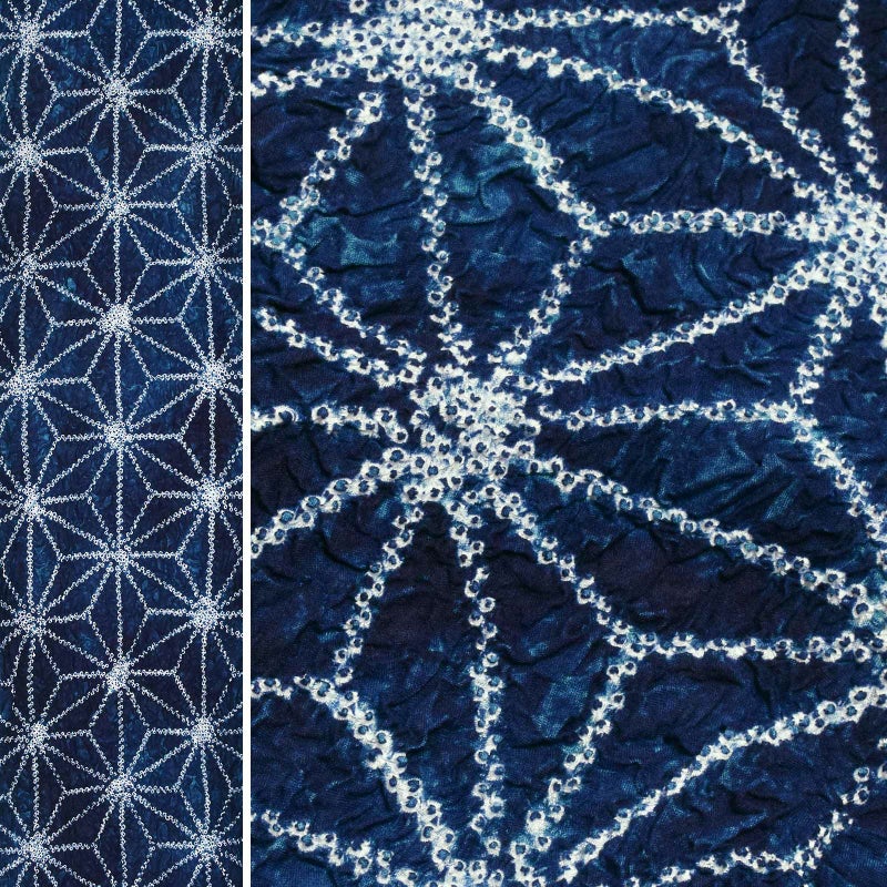 【カラー】深い紺や藍色に白。細かな鹿の子を繋げて表現された麻の葉模様。古典的な魅力のある柄です。