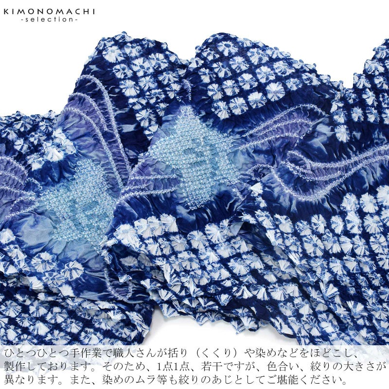 ※ひとつひとつ手作業で職人さんが括り(くくり)や染めなどをほどこし、製作しております。そのため、1点1点、若干ですが、色合い、絞りの大きさが異なります。また、染めのムラ等も絞りのあじとしてご堪能ください。