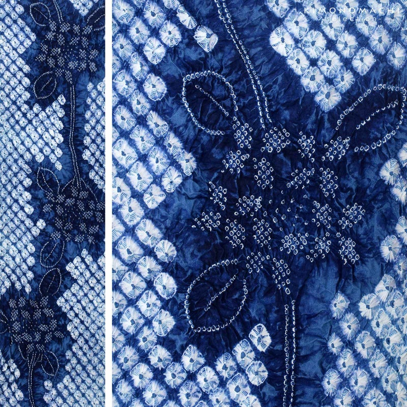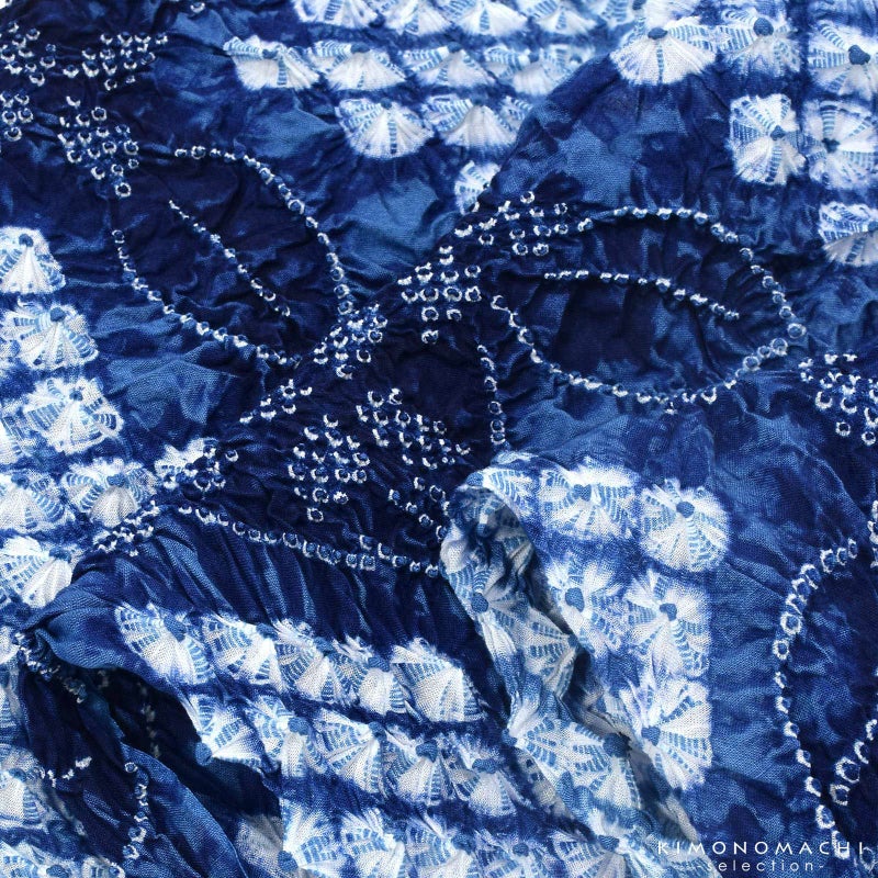 ※ひとつひとつ手作業で職人さんが括り(くくり)や染めなどをほどこし、製作しております。そのため、1点1点、若干ですが、色合い、絞りの大きさが異なります。また、染めのムラ等も絞りのあじとしてご堪能ください。