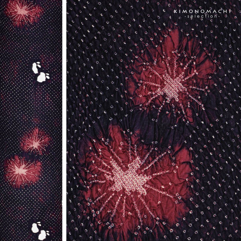 3. 絞り浴衣反物「夢はなび えんじ紺」女性浴衣 レディース浴衣 絞り浴衣 綿浴衣 未仕立て【メール便不可】