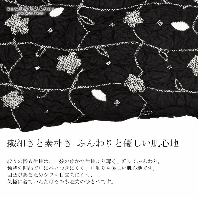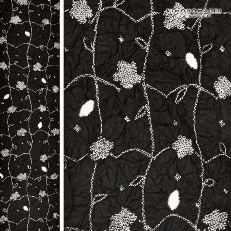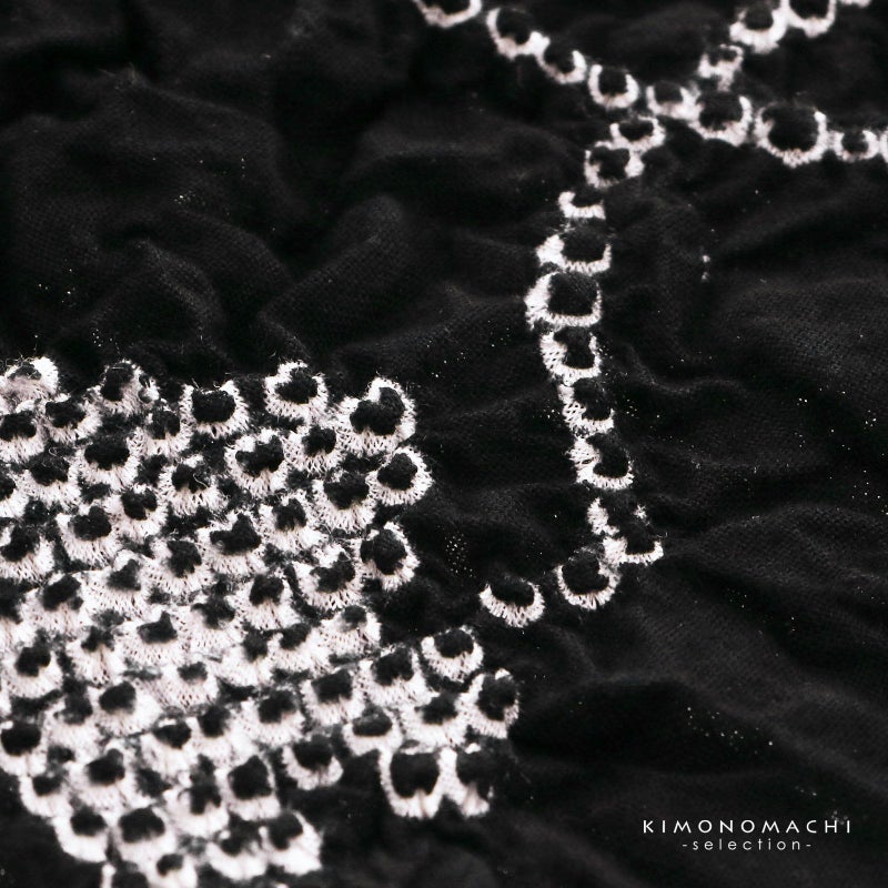 【色柄】黒地に白。細かな白の絞りを連ねたお花の格子。
