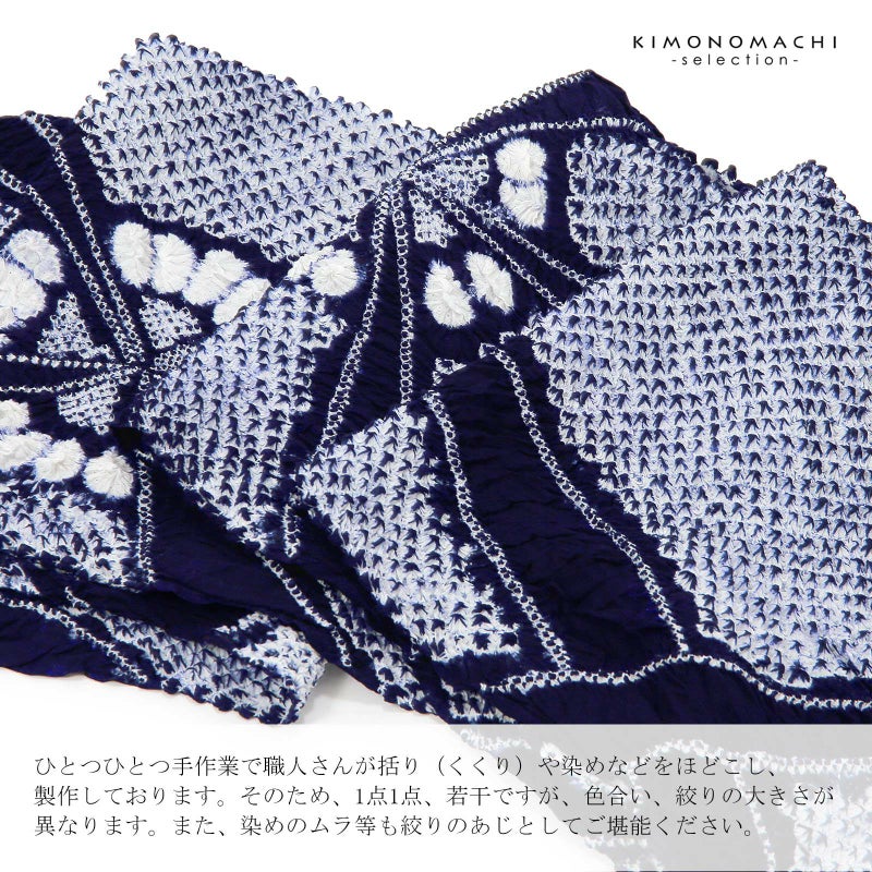 ※ひとつひとつ手作業で職人さんが括り(くくり)や染めなどをほどこし、製作しております。そのため、1点1点、若干ですが、色合い、絞りの大きさが異なります。また、染めのムラ等も絞りのあじとしてご堪能ください。