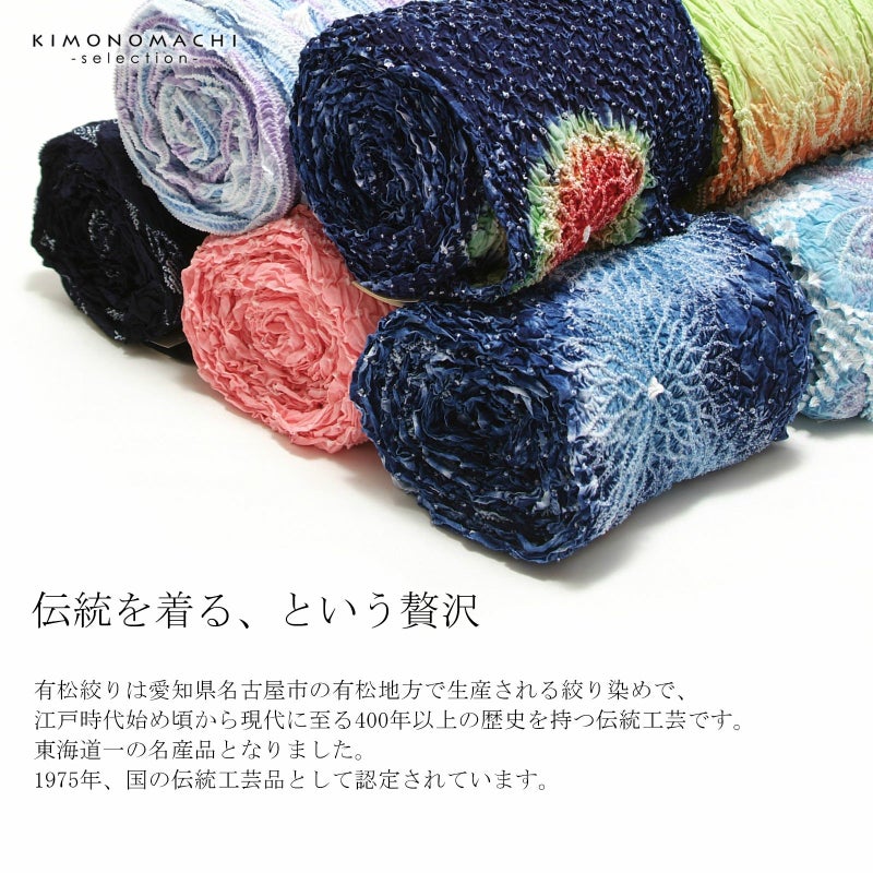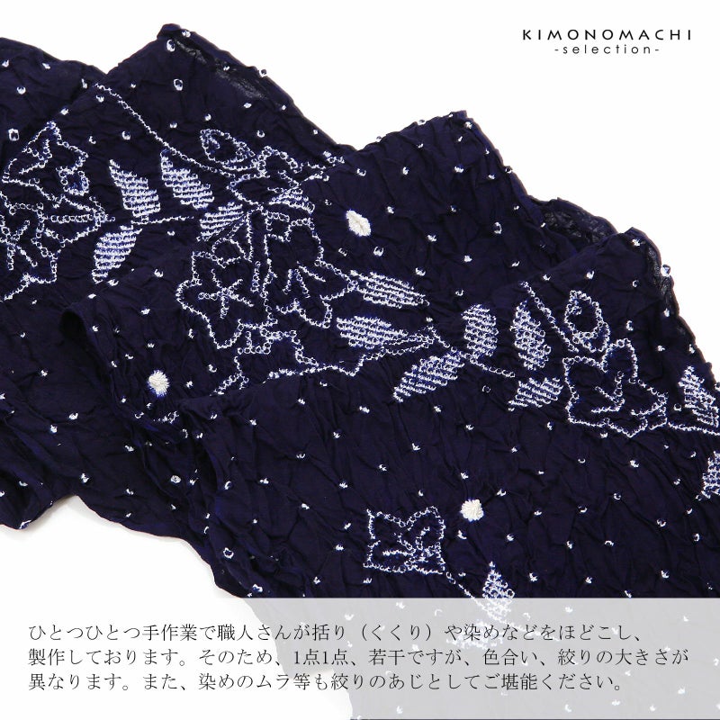 ※ひとつひとつ手作業で職人さんが括り(くくり)や染めなどをほどこし、製作しております。そのため、1点1点、若干ですが、色合い、絞りの大きさが異なります。また、染めのムラ等も絞りのあじとしてご堪能ください。