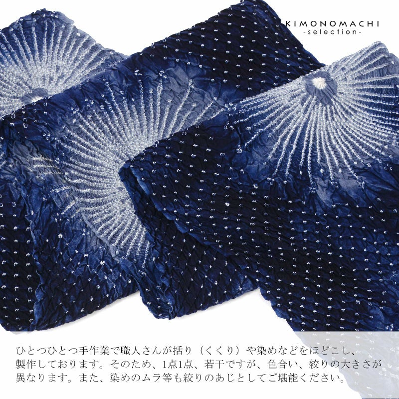 ※ひとつひとつ手作業で職人さんが括り(くくり)や染めなどをほどこし、製作しております。そのため、1点1点、若干ですが、色合い、絞りの大きさが異なります。また、染めのムラ等も絞りのあじとしてご堪能ください。