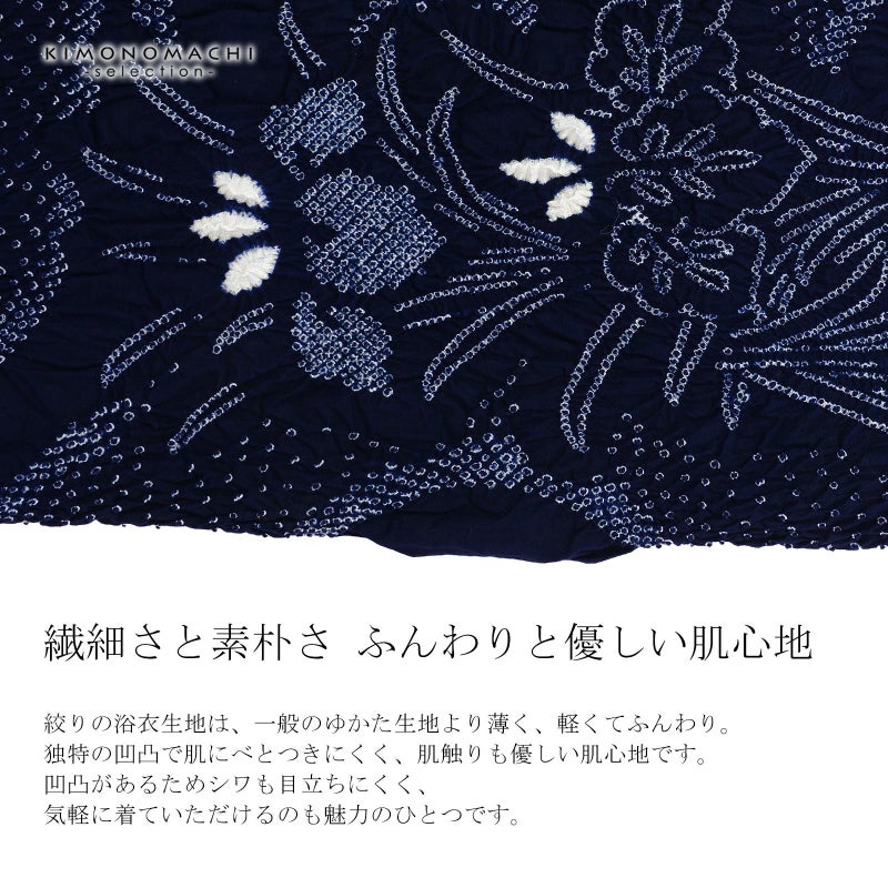 >居敷当て加工(浴衣の後ろ見頃の下側に当て布を付けることで強度を高め、下着の透けを防ぎます)◆お手入れ方法、絞り浴衣の特性につきましては
