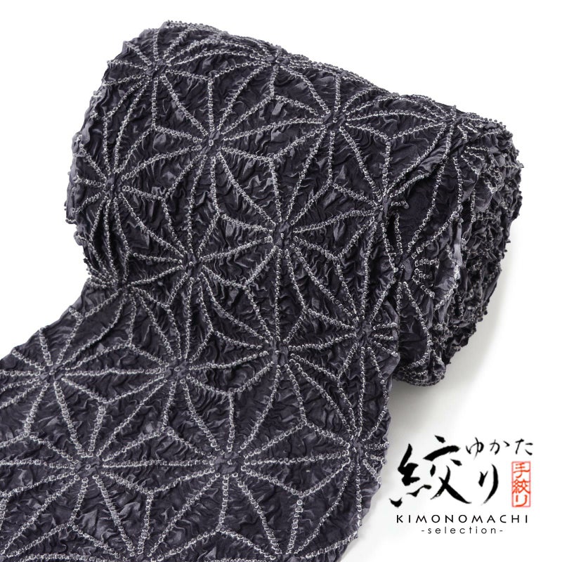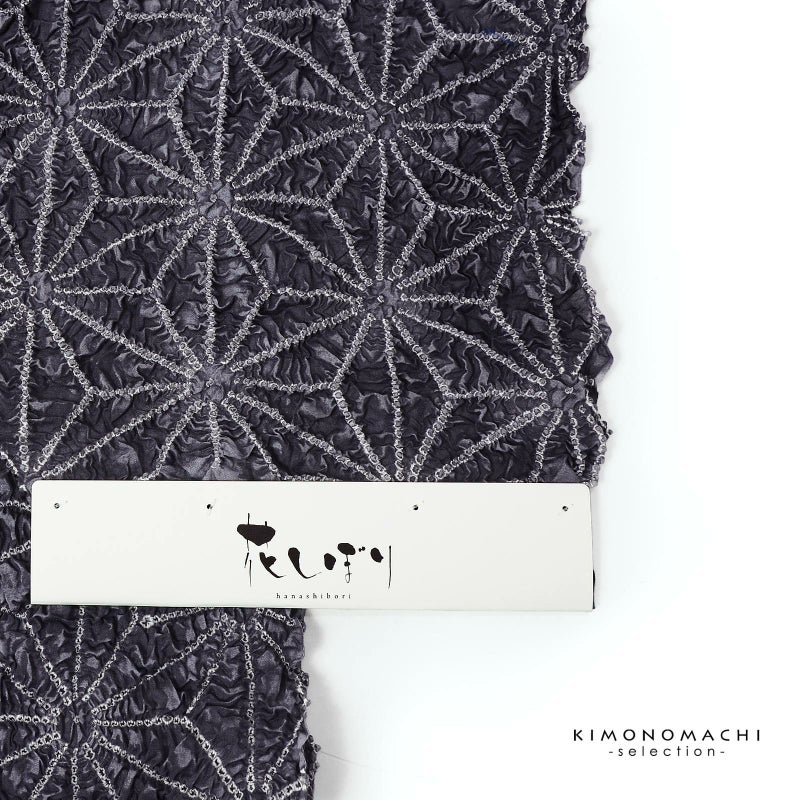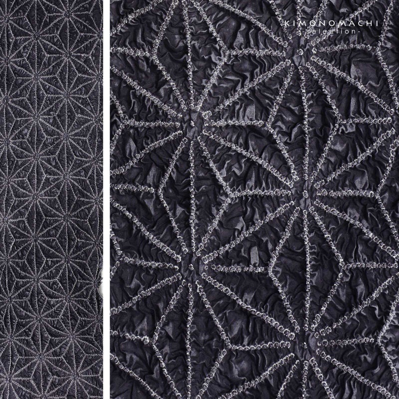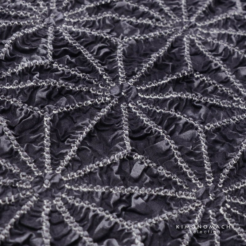 【色柄】やや鈍めの濃いグレーに、ひと目絞りで表現された、寄木細工のような麻の葉文様。