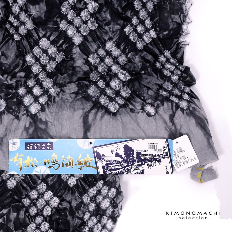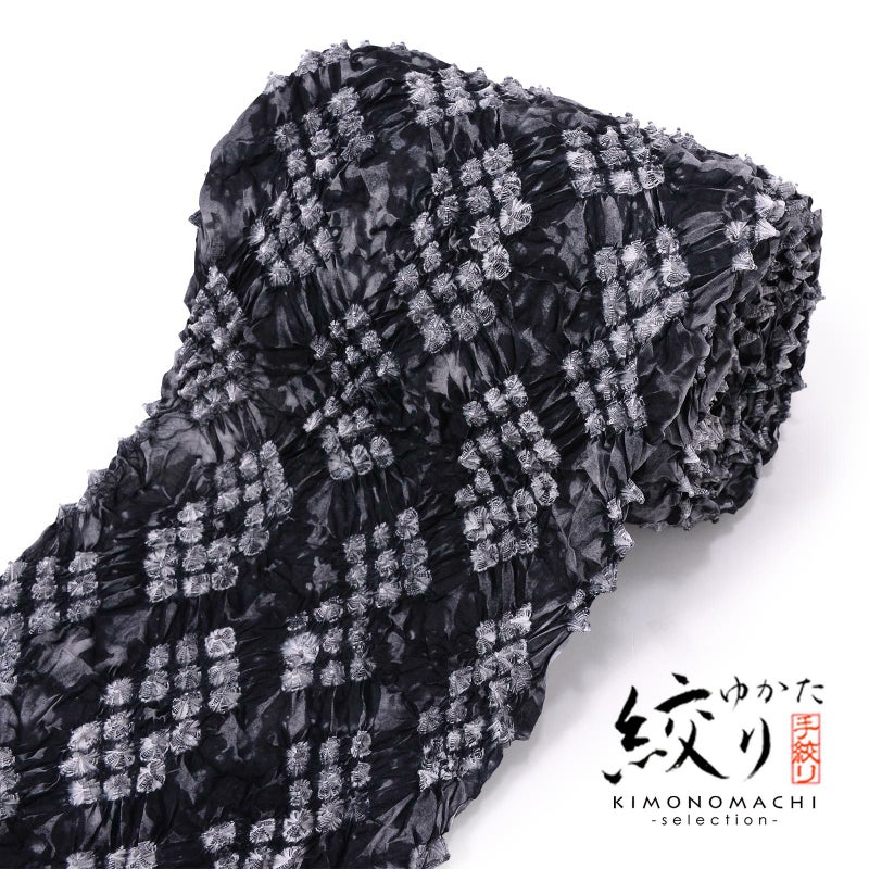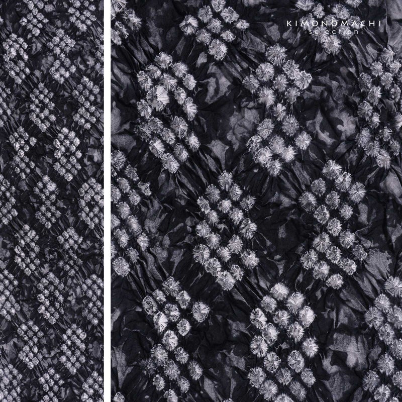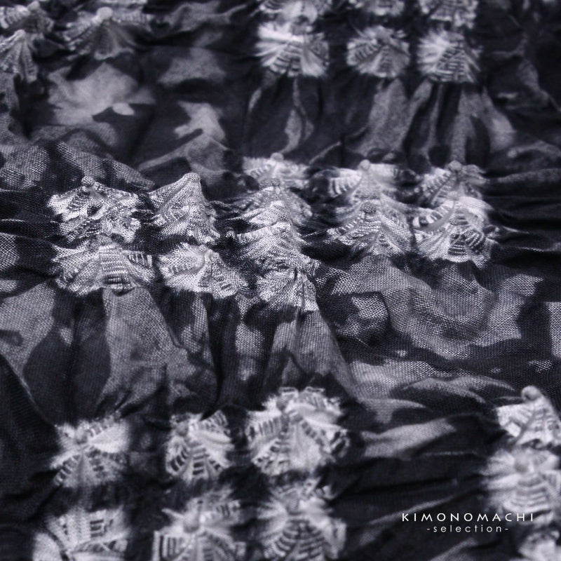 【色柄】濃淡のある灰色の地に重ね菱の形に並んだ蜘蛛絞り。
