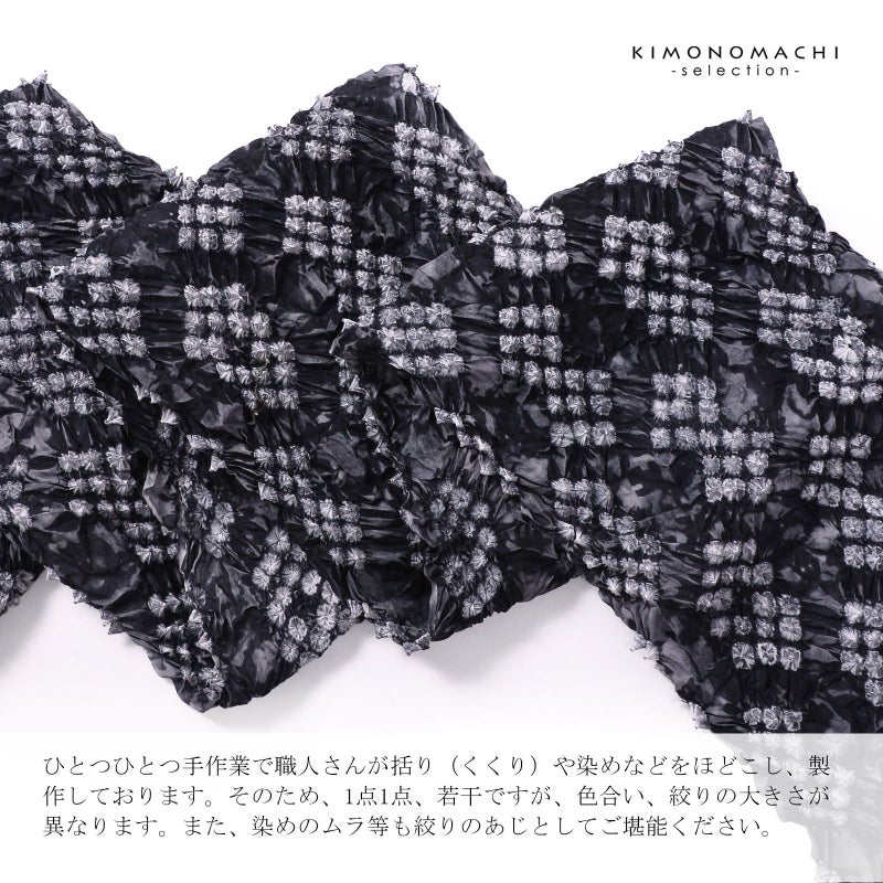 ※ひとつひとつ手作業で職人さんが括り(くくり)や染めなどをほどこし、製作しております。そのため、1点1点、若干ですが、色合い、絞りの大きさが異なります。また、染めのムラ等も絞りのあじとしてご堪能ください。