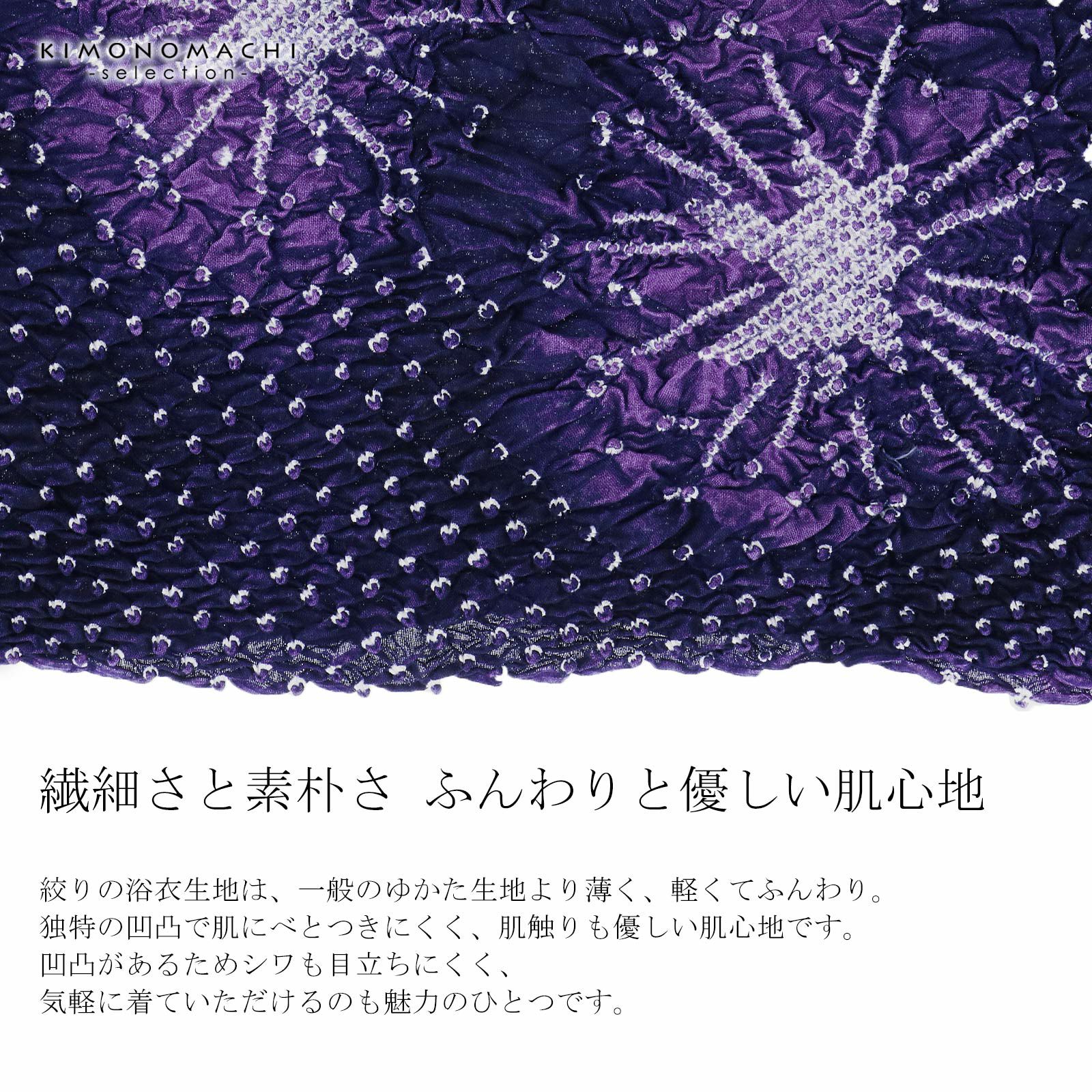 他の画像を見る 送料無料 上品でお洒落な絞り浴衣の反物 絞り浴衣反物「夢はなび 紫紺」女性浴衣 レディース浴衣 絞り浴衣 綿浴衣 未仕立て【メール便不可】 きもの町価格 ¥ 63,525 税込 カートに入れる お気に入りに登録する