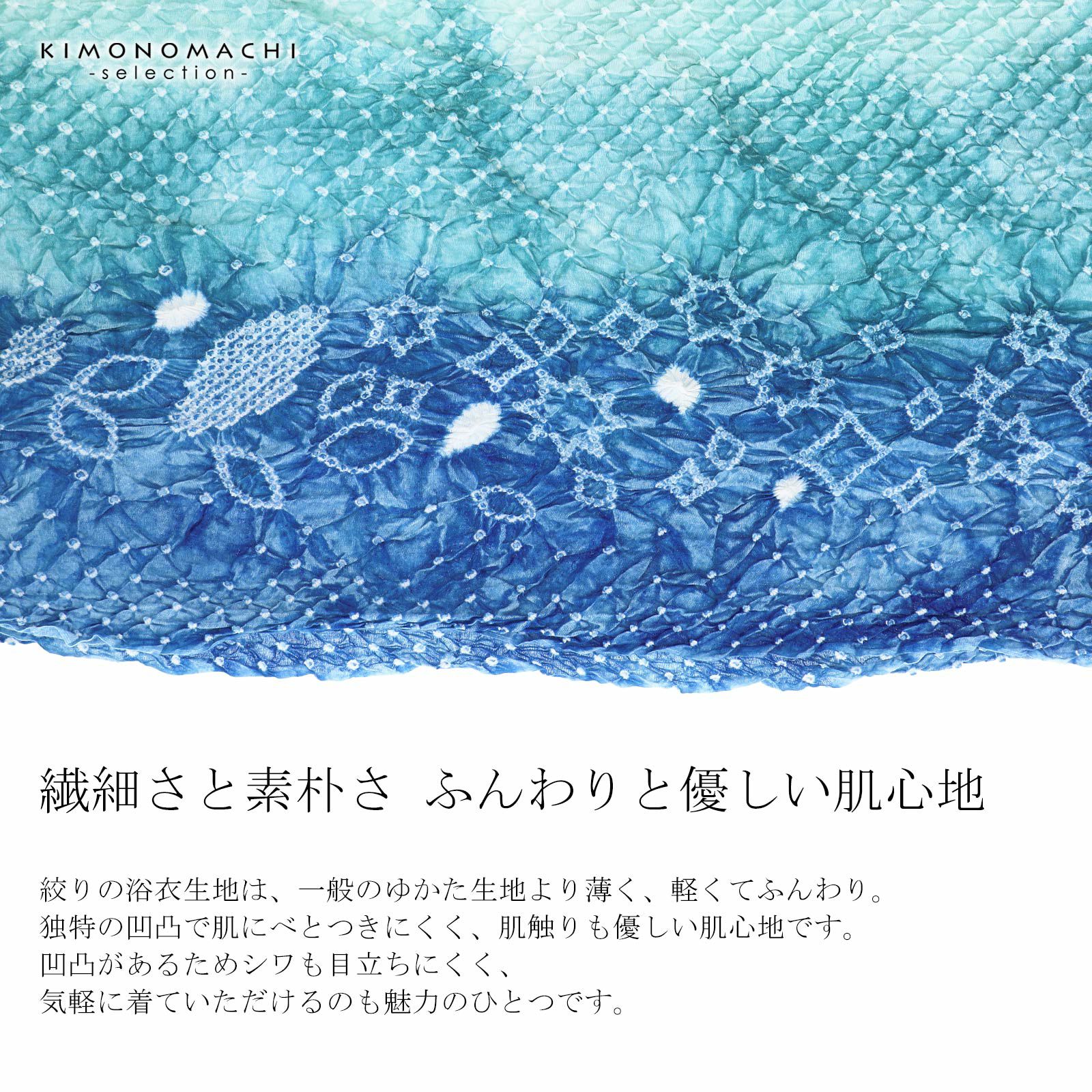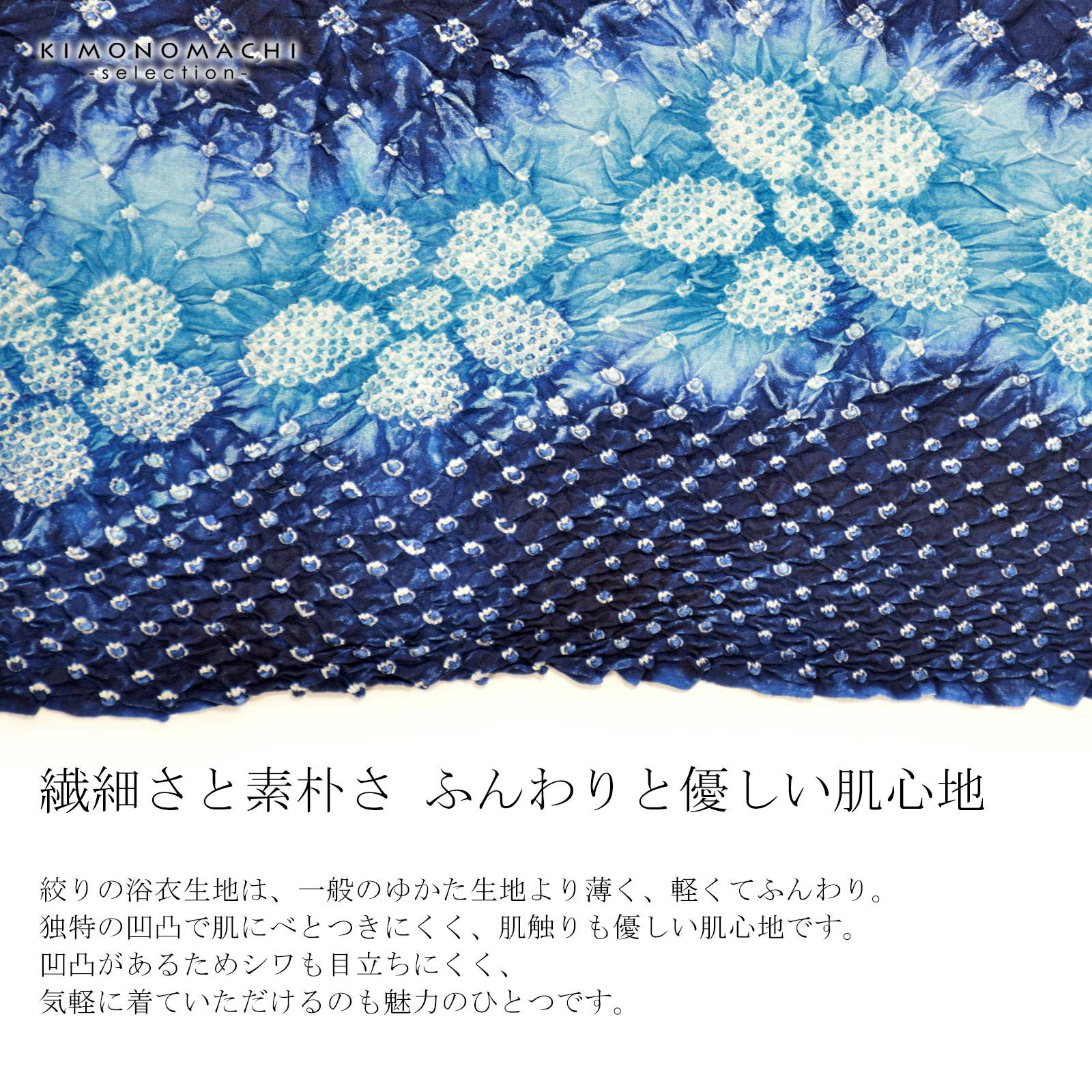 他の画像を見る 送料無料 上品でお洒落な絞り浴衣の反物 絞り浴衣反物「イソップ ブルー三段ぼかし」女性浴衣 レディース浴衣 絞り浴衣 綿浴衣 未仕立て【メール便不可】 きもの町価格 ¥ 63,525 税込 カートに入れる お気に入りに登録する