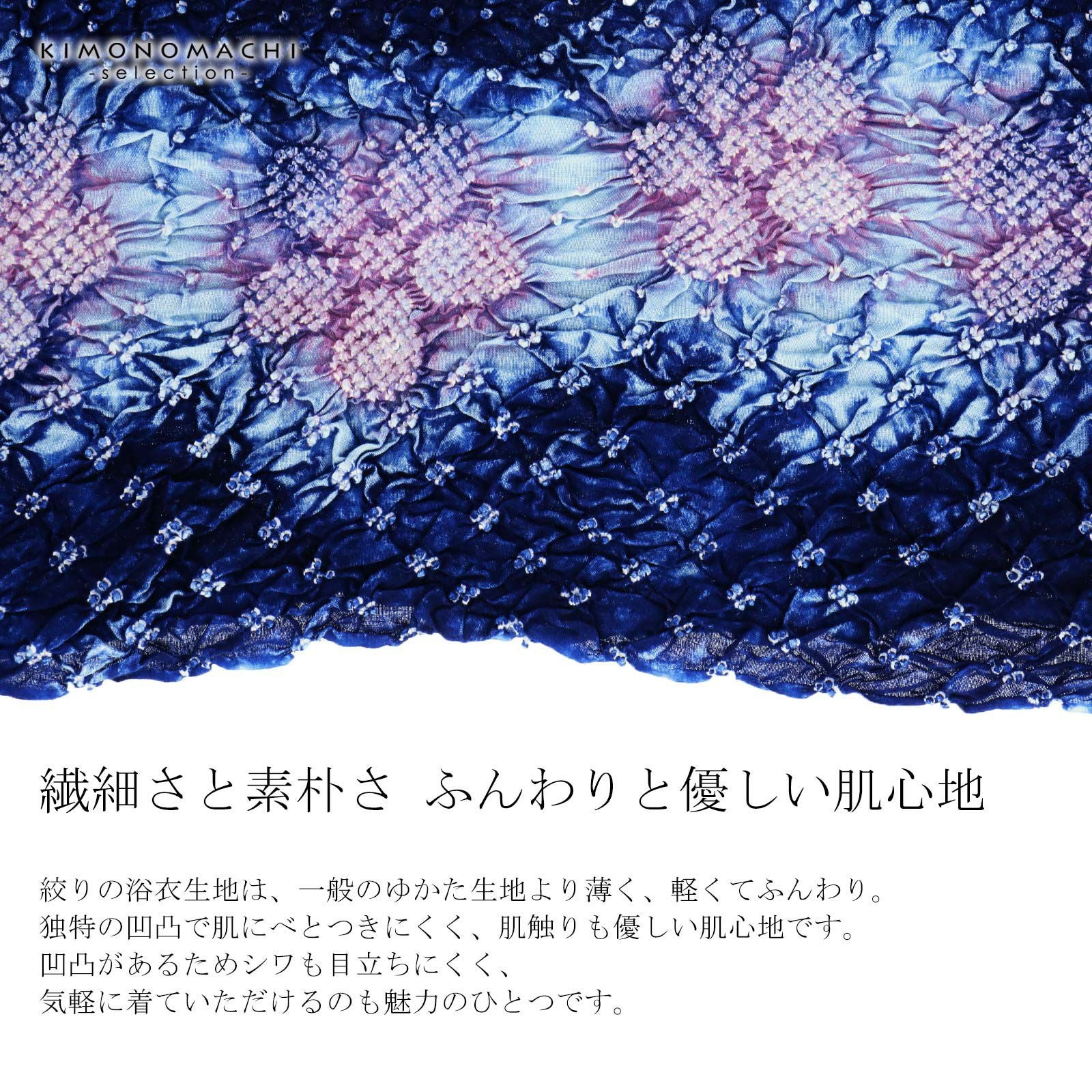 他の画像を見る 送料無料 上品でお洒落な絞り浴衣の反物 絞り浴衣反物「桔梗 紺」女性浴衣 レディース浴衣 絞り浴衣 綿浴衣 未仕立て【メール便不可】 きもの町価格 ¥ 63,525 税込 カートに入れる お気に入りに登録する
