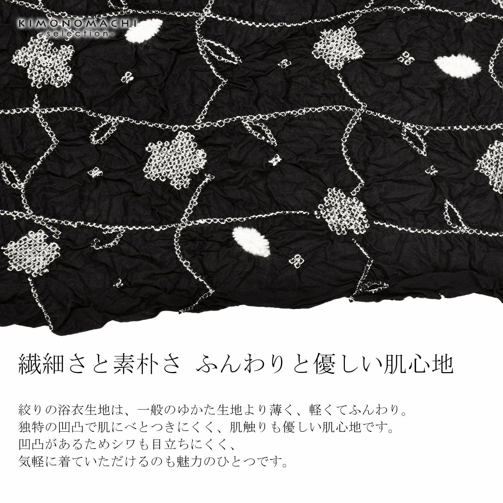他の画像を見る 送料無料 上品でお洒落な絞り浴衣の反物 絞り浴衣反物「喝采 黒」女性浴衣 レディース浴衣 絞り浴衣 綿浴衣 未仕立て【メール便不可】 きもの町価格 ¥ 63,525 税込 カートに入れる お気に入りに登録する