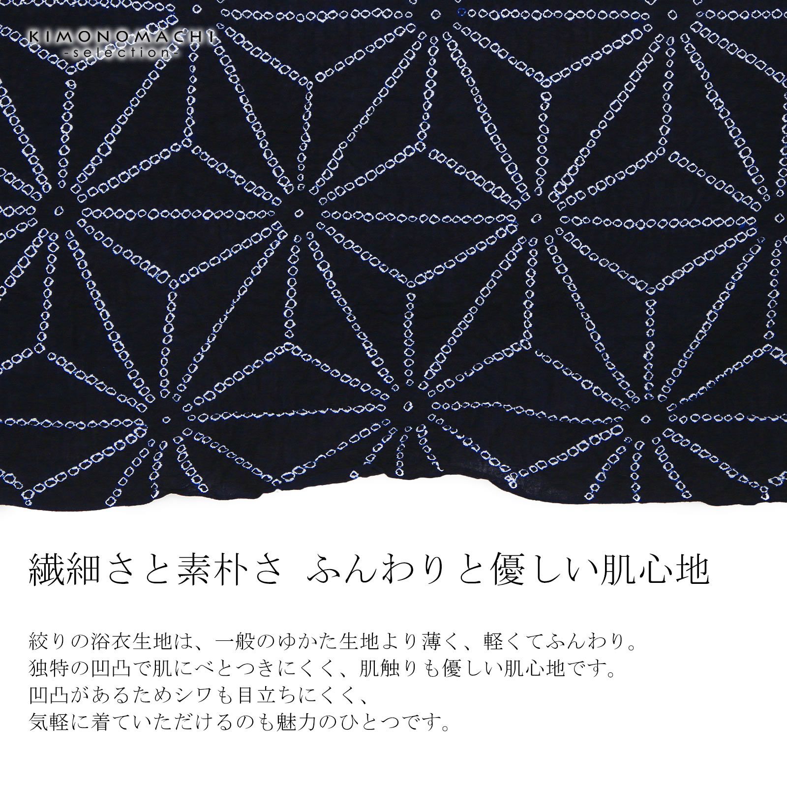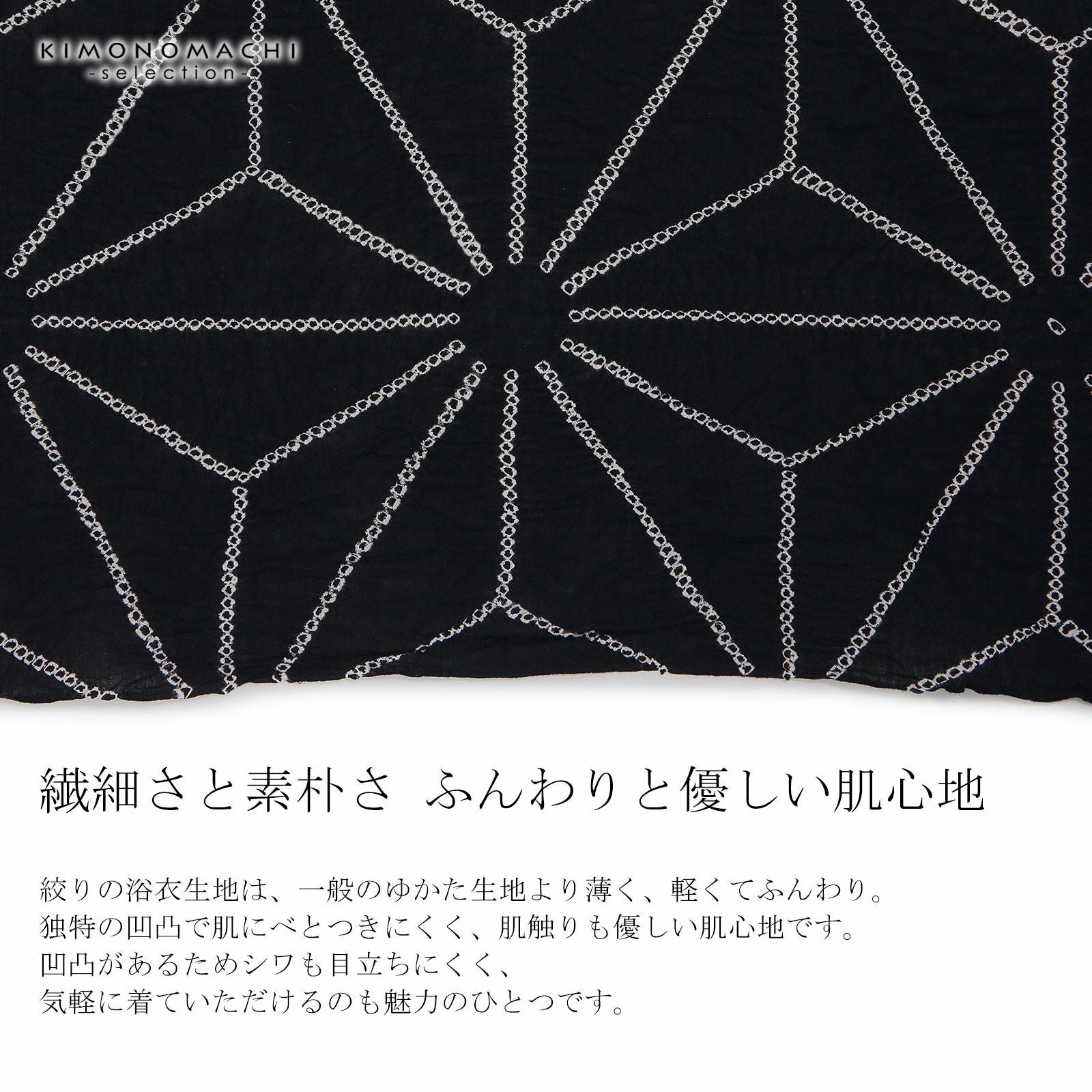 他の画像を見る 送料無料 上品でお洒落な絞り浴衣の反物 絞り浴衣反物「麻の葉大 黒」女性浴衣 レディース浴衣 絞り浴衣 綿浴衣 未仕立て【メール便不可】 きもの町価格 ¥ 54,450 税込 カートに入れる お気に入りに登録する